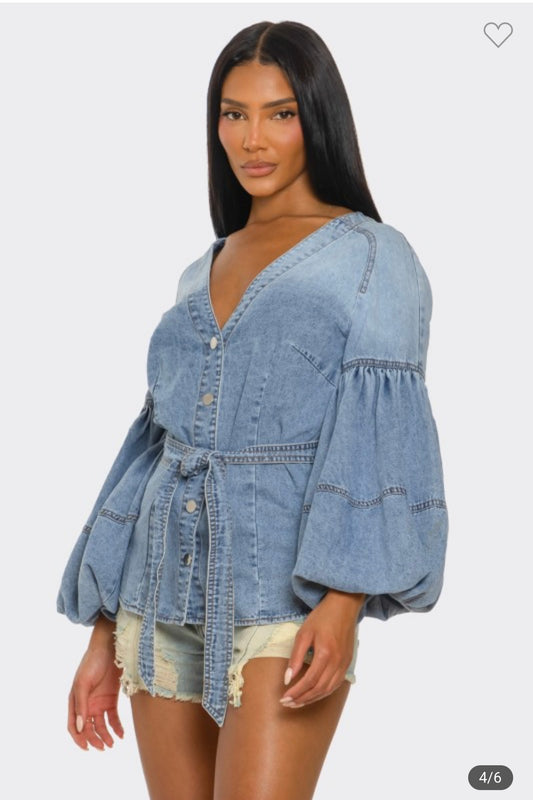 Denim Muse Puff Sleeve Button-up Top