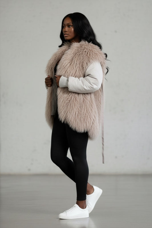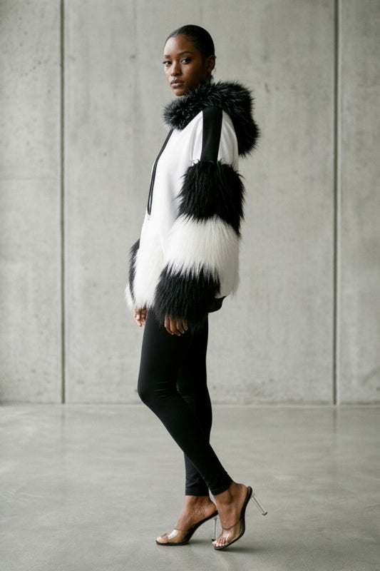 Faux Fur Color-block Oversized Hoodie