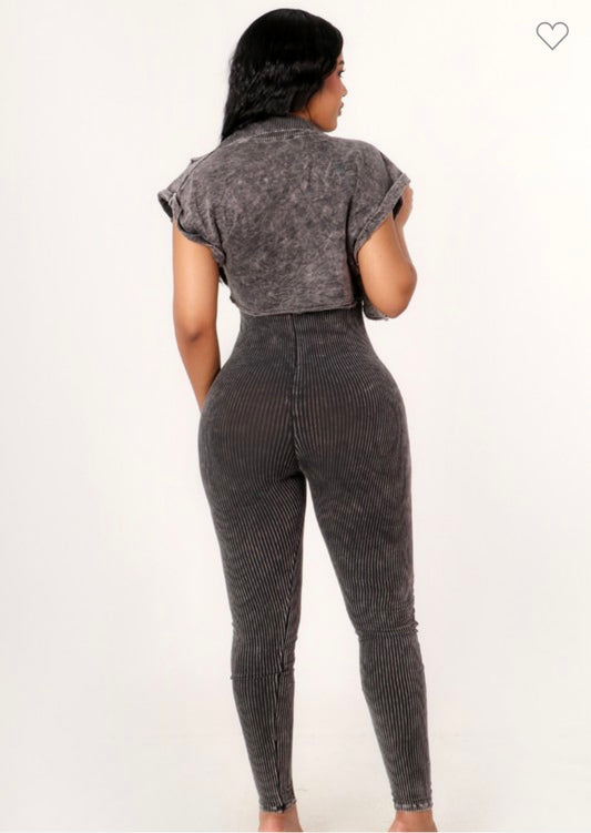 Comfy Baddie Mineral Wash Ribbed Jumpsuit