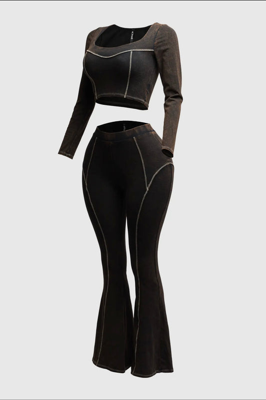 Comfy Baddie Mineral Wash Long Sleeve Ribbed Pants Set